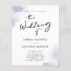 Budget All in One QR-kod RSVP Chic Modern Svart Kalligrafi Dammtor Blå Akvarell Bröllopsinbjudan Flyer... Vår prisvärda trendiga minimalistiska dammiga blåa akvarellbröllopsinbjudan har modern kalligrafiskrift kombinerad med serif- och sans serif-text för en enkel och chic bröllopsinbjudan. Baksidan av inbjudan visar också din bröllopswebbplats QR-kod samt webbadressen till webbplatsen så att dina gäster enkelt kan svara online och se alla detaljer som normalt skickas i ett bröllopspaket. Den exempel QR-kod grafikmallen och all exempeltext (förutom de grafiska kalligrafielementen) kan enkelt revideras med din egen information i personaliseringsmallen. OBS: Papperet för vår mest prisvärda budgetinbjudan är 80 g vikt och den pappers tjocklek som oftast används för affärs- och evenemangsflyers. Din kontorsresurs eller webbutik kommer att kunna leverera A6-kuverten för dessa inbjudningar. Vår Watercolor Chic Modern Calligraphy Wedding Collection innehåller en något tyngre vikt QR-kod budget