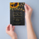 Elegant chic sommar- eller hösthöstbröllop BUDGET-inbjudan PAPPER FLYER-mall med online osa på mörk bruna lingved med vacker rost och snyggt orange och gult solblommor och stringor eller skaka guld. Enkel att anpassa med din information och en automatiskt genererad sökning i QR-kod till webbplatsen eller någon annan online-länk. ++++++++ Inbjudan är lämplig för modern elegant sommar- eller höstfallsrastgård land utomhus, gårdslinne eller trädgårdsbröllop. +++++++++++++++++++++++++++++++++++++ TOD LÄS DETTA FÖRE KÖP! Det här är ett lågbudgetkort som är tryckt på en FLYER (reklamtyp av papper) och som är lämpligt för vikande utskick. ++++ Observera att BUDGETEN PAPPER ÄR THIN - Du kan uppgradera så att kortet skrivs ut på cardstock ++++ ENVELOPES INTE INKLUDERAS. +++ Dubbla-kontrollera all information och stavning i texten eftersom du får exakt det du ser - ingen annan kontrollerar någonting innan du skriver ut.