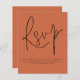 Enkel QR-kodskript Bröllop Terracotta OSA. Ett bekvämt tillvalshölje där du kan be dina gäster att söka igenom QR-koden på webbplatsen bröllop till OSAN. Ett budgetvänligt alternativ på 4,5 x 5,6 tum. Finns på ett SEMI GLOSS 110 lb-kort LAGRAR eller ett SATIN AVSLUTAR 80 lb TINNER PAPPRA LAGRAR. En snyggt ställer in typografi för huvudrubrikens OSA som kompletterar resten av texten som du enkelt kan anpassa, med QR-kod på baksidan. Byt helt enkelt ut mot din egen.