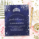 För en elegant Quinceañera, 15:e födelsedag. En blå bakgrund färg, det blå färg är ojämn. Dekorerad med faux silver glitter damm och en tiara, krona. Anpassa och lägg till information om namn, ålder och party. Namn är skrivet med ett handskript i stil