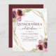 Budget Burgunder och Blush Rosa Moderna och Eleganta Falska Guld Folie Geometriska Ram Blommor Vattenfärg Vår Quinceanera 15-årsfirande Inbjudningar - inkluderar vacker och elegant skript typografi med moderna botaniska blommor och grönska för den speciella femtonårsfirandet.