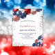 En vit chic bakgrund. Dekorerad med patriotiska ballonger av färgad i rött blått och vitt. Anpassa och lägg till information om namn och party. Namn är skrivet med ett handskript i stil.