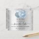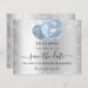Ett flickigt och trendigt Spara datum-kort för en Quinceañera, födelsedagsfest vid 15 års ålder. En falsk silverfärgad bakgrund dekorerad med falskt silverglitter och blå ballonger. Anpassa och lägg till datum och namn/ålder. Texten: Spara datum är skriven med en stor trendig handskriven stil.