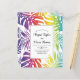 Den här vackra bröllopsinbjudan innehåller ett dynamiskt mönster av tropiska monster och handflatan löv i färg på en regnbåge, liksom ditt namn i ett snyggt-skript. Inbjudan innehåller också en QR-kod på baksidan som gör det möjligt för gästerna att enkelt ta sig till OSANS online. Den text som ramades in med sitt svarta gräns tillför extra en elegans till denna inbjudan till öga att fånga, skapar den perfekten för en homosexuell eller lesbisk bröllop.