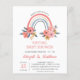 Anpassa den Rosa-Blommigten för Baby med vattenfärg på Vintagen Stil Rainbow Vår Flicka Virtuell Baby Shower eller Sprinkle Budget Friendly Inbjudningar på vit bakgrund med ditt meddelande och information. Den här inbjudan till chic innehåller blommor från ro och modern botanisk grey med söt och elegant manustypografi för att det speciella Mor ska vara firande.