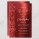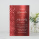 Den här elegantens lämnat kant har en modern bröllopsinbjudan med ett rött faux glitter gräns. Anpassadet kombinerar vit handskrift, tryckplåt och kursivt typsnitt på en röd faux-borstad metall-bakgrund. På baksidan finns utrymme för information om bröllop på en röd metall-borstad bakgrund, tillsammans med en QR-kodgäst som kan söka på din webbplats och OSA, vilket sparar kostnaderna för utskrift och utskick av separat OSA kort.