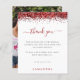 Budget Red Glitter Photo Möhippa Tack. Ett budgetmässigt prist mindre än 4,5 x 5,6 tum alternativ. Finns i ett SEMI-GLOSS 110 lb-kort LAGRAR, vilket är standardalternativet (tjockare för inbjudningar), ELLER SATIN AVSLUTAR 80 lb PAPPER LAGRAR (perfekt för bilagor). Kuvert är ett extra som tillval och är något större än det storleka kortet. En faux glitter gräns med fet rött står överst och Tack är i ett elegant-skript. Anpassa texten till dina egna detaljer. På baksidan byter du favoritfoto från duschen av porträtt orientering.