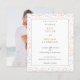 Dina speciella budget bröllopsfirande inbjudan detaljer sitter i en elegant modern typsnitt i en guldbordad panel över en färgrik regnbåge konfetti bakgrund. Baksidan visar ditt eget speciella foto eller lämna tom eller lägg till en bakgrundsfärg som passar. Designad av Thisisnotme©