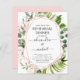 Budget Eukalyptus Grönska Rose Guld - Rosafärgad Geometrisk Botanisk Vattenfärg Vårbröllop Repetitionsmiddagsinbjudningar på Vit bakgrund - inkluderar vacker och elegant skript typografi med moderna botaniska blad och grönska för den speciella Bröllopsdag celebrationen.