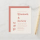 Den här moderna inbjudan till reflexbröllop har texten terracotta på en benvit bakgrund. Lägg till namn och monogram initialer för briden och trimningen i snyggtens återbildningstypografi för visning och detaljerna i sans serif-teckensnitt. Den omvända sidan är en matchande skugga av solid terracotta. Obs! Kuvert inkluderas inte automatiskt i dessa budgetinbjudningar, så kom ihåg att välja alternativet "vita kuvert"!