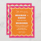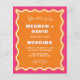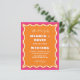 Budget Retro Snett Vågig Rosa Orange Foto Bröllopsinbjudan