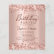 Budget Modern Elegant Script Ro Guld Metallic Glitter 80:e födelsedagsfest inbjudan. Den här vuxens gigabordsdesign har snyggt-handskript för kalligrafi (eller typografi), rosa eller ro-faux-bakgrund för borstad metallfolie med löst glam glitter gräns överst och guld. Enkel att anpassa, perfekt i alla åldrar.