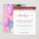 Budget Röda Glitter Foto Sweet 16 Tackkort. Ett budgetpris MINDRE 4,5” x 5,6” alternativ. Finns i en HALVMATT 110 lb KORTKVALITET som är standardalternativet (tjockare för inbjudningar), ELLER en SATIN FINISH 80 lb TUNNARE PAPPER (idealisk för inklusioner). Kuvert är ett tillval och är något större än kortets storlek. En falsk röd glitterkant är överst, och "Tack" står i ett elegant skrivsätt. Anpassa enkelt orden efter dina behov. På baksidan kan du byta till ditt favoritfoto från din fest eller porträttorientering.