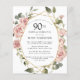 Vackra dammiga rosa rosor skapar en modern blomsterkant på denna inbjudan till 90-årsfirande.