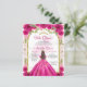 Elegant guld glitterbåge med blomster prinsessa klänning för 15-års Quinceanera-inbjudan.