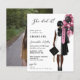 Budget Examen Tjej med Svarta och Rosa Ballonger Anpassat År Modern Minimalistisk Foto Hon Gjorde Det Examen Inbjudan
