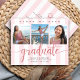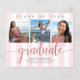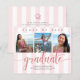 Meddela världen att din favoritstudent har nått sin milstolpe med denna fantastiska, enkla, moderna, personliga budgetmeddelandeinbjudan. Gnistrande, elegant, falsk rose gold-glitter kalligrafiskrift och grå sans serif-typografi överlagrar en ljus rosa och vit randig bakgrund. Lägg till tre foton efter eget val och anpassa den anpassade texten med din examen namn, skola namn, klassår och examensdatum. På baksidan lägg till din personliga anteckning, nästa skola de går på, festinformation, etc. Garanterat att lägga till snygg kul till deras speciella tillfälle!