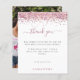 Rosa Glitter Photo Hen Party Tack. Ett budgetmässigt prist mindre än 4,5 x 5,6 tum alternativ. Finns i ett SEMI-GLOSS 110 lb-kort LAGRAR, vilket är standardalternativet (tjockare för inbjudningar), ELLER SATIN AVSLUTAR 80 lb PAPPER LAGRAR (perfekt för bilagor). Kuvert är ett extra som tillval och är något större än det storleka kortet. Ett faux glitter gräns i söt rosa är överst och Tack finns i ett elegant-skript. Anpassa texten till dina egna detaljer. På baksidan växlar du ditt favoritfoto från party i porträtt.