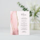 Den moderna menyn bröllop på den lämnat kant i eleganten har en vattenfärgad rosa i gräns som trimmas med faux guld glitter. I anpassadet kombineras handskriftsskript för kol-grått och typsnitt på rosa. Den omvända sidan har en passande och guld agate-design.
