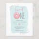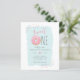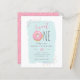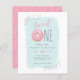 Budget Rosa Munk Sprinkle Söt 1-årsdag Inbjudningar. Den första födelsedagen är verkligen en mycket speciell, så fira din lilla flickas 1-årsdag med våra unika och roliga inbjudningar! Med en rosa munk med färgglada sprinkles som visar "söt ETT" högst upp. Din festinformation visas i söt och trendig typografi mot en blå akvarellbakgrund. Baksidan har en ljus rosa bakgrund med sprinkles.