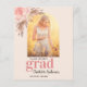 Roséguld bakgrund dekorerad med pampasgräs och rosa blommor. Personifiera och lägg till ditt eget foto av den utexaminerade. Lägg till år och skolans namn. Med ordet: Exam skrivet med stora bokstäver.