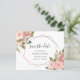 Vacker design till ett budgetpris! Vackra rosa rosor med grönska omger en stilren geometrisk ram med guldtryck, vilket gör detta till ett vackert kort för att spara datum för bröllopet. Se även våra kompletterande artiklar.