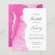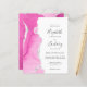 Den här elegantens lämnat kant har en modern bröllopsinbjudan med rosa vattenfärg agate gräns som trimmas med faux silver foil. Anpassadet kombinerar handskrift, tryckplåt och kursivt typsnitt i grått i kol mot vit bakgrund. Den omvända sidan har en matchande rosa- och silver-agate-design.