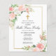Rosa rosor och ljusa vita hortensia blommor är nästlade i mjuka gröna blad för att skapa eleganta blomsterarrangemang som dekorerar en glänsande guld ram som omger din Bröllopsfest detaljer. Denna artikel är en del av den Rosa och Vita Blommiga Första Kommunion Kollektionen.