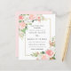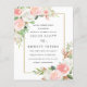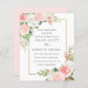 Rosa rosor och ljusa vita hortensiablommor är nästlade i mjuka gröna blad för att skapa eleganta blomsterarrangemang som pryder en glänsande guldram som omger era bröllopsdetaljer. Baksidan är rosablush med en enkel koordinerande blomsterbukett. Denna artikel är en del av Rosa och Vita Blommiga Bröllops Kollektionen.