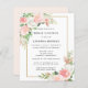 Rosa ros och vita blommor från vattenskikt kapslas i mjuk grönt löv för att skapa elegantens blommigt som dekorerar en mousserande guld ram som omger din Möhippa Luncheon-information. Denna punkt är party i Möhippan för Rosa och vit Blommigt.