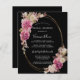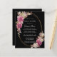 Rosa människor och vit ros-knoppar skapar två arrangemang för blommigten av den orustiska Boho på en elegant i ram vid nedre guld. Det finns också en liten blommigt bukett på baksidan av inbjudan. All text kan redigeras.