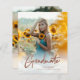 En budget roséguld foto-examensfestinladan med handskriven typsnitt och ett porträttfoto som sträcker sig över hela framsidan med namn och examensdetaljer. Baksidan har ett andra foto och ytterligare festdetaljer. Klicka på redigeringsknappen för att anpassa denna design.