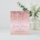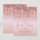 Ett budgetvänligt pappersalternativ. Kuvert är ett tillval. Glam falska glitterdroppar i rose gold kantar den övre kanten på båda sidor. Bröllopsfest är skriven i en modern stilfull stil i en matchande nyans och resten av texten kan du enkelt anpassa.