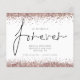 Ett prisvärt BUDGETalternativ i en mindre storlek 4,5 x 5,6” semigloss 110g vikt, som har liknande tjocklek som ett vykort (kan dock inte användas som vykort). OBS! Det finns EN per ark. Budget Rose Gold Glitter We Decided on Forever QR-kod Bröllop Save the Date. Lägg till din QR-kod på din bröllopswebbplats på baksidan genom att ersätta QR-koden på provet eller ta bort om den inte behövs. En touch av glamour för att bjuda in dina gäster att spara ditt datum. We Decided on Forever är i ett stilrent script i mitten med falska glitterkanter på båda sidor i rose gold. Resten av texten kan du enkelt anpassa. Text- och bakgrundsfärger kan ändras om du vill passa din bröllopstema bättre via alternativet