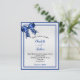 En modern elegant- och bröllopsinbjudan. Faux silver metallisk tittar bakgrund dekorerad med royal blått ramar och båge. Anpassa och lägg till information om namn och bröllop. Svart färgad brev.