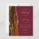 Spara kostnaden för att skriva ut och skicka separata RSVP-kort med denna eleganta moderna allt-i-ett budgetbröllopsinbjudan. Den vänstra kanten har en bränd orange och rost vattenfärg agat-kant med guldglitter. Den anpassningsbara texten kombinerar guldfärgad handskrift, kopparplåt och kursiva stilar på en burgunderröd bakgrund. Baksidan ger utrymme för detaljer om bröllopet på en enfärgad burgunderbakgrund, tillsammans med en QR-kod som gästerna kan skanna för att besöka er webbplats och svara.