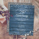 Med känsliga silverkärlekshjärtkonfetti på en blå rustik bakgrund av träpaneler från ladugård. Personifiera med din speciella tjugofemårs silverjubileumsinformation i chic bokstavsstil. Designad av Thisisnotme