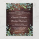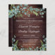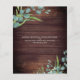 Rustic bröllop firande-inbjudningar tryckta på lättviktiga pappra ideal för konservativets budgetar och handleverans till gästerna. Vackert land mörk trä med vattenfärgad eukalyptus och grönt med guld-accenter och elegant-manustypografi. All text är redigerbar för att ändra formuleringen så att den passar dina behov. Kontakta designern via Zazzle-Chattan eller makeitaboutyoustore@gmail.com om du vill att designen ska ändras, på en annan produkt eller samordnande artiklar.