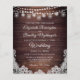 Rustiska bröllopsinbjudningar tryckta på lättviktiga pappra ideal för konservativets budgetar och handleverans till gästerna. Vackert land-trä med glansträ ljus, party-lyktor och Mason burk och accentuerat med vitt snöre. All text är redigerbar för att ändra formuleringen så att den passar dina behov. Kontakta designern via Zazzle-Chattan eller makeitaboutyoustore@gmail.com om du vill att designen ska ändras, på en annan produkt eller samordnande artiklar.