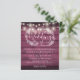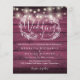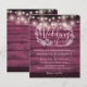 Med vacker strängbelysning och en handritad blomsterkrans, kan denna eleganta budget rustika träbröllopsinbjudan anpassas med din information i chic typsnitt på en burgunderröd träpanel bakgrund. Designad av Thisisnotme