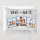 Spara datumet! Meddela din bröllop till vänner och familj med det här grått-virket, spara datumkorten med dagens fotokollage. Postkorten för budgetbröllopsinbjudan måste skickas som vykort för stora storlekar, så de kan få standardportoavgifter men behöver inte ett kuvert eller en returadressetikett. Anpassa med 3 av dina favoritfoton i förlovningen och anpassa dig efter namn, datum, plats och webbplats i bröllop. Lägg till annan information på baksidan. Denna unika spara av korten kommer att ge ett bestående intryck, era gäster kommer att se till att spara datumet! COPYRIGHT © 2020 Judy Burrows, Black Hund Art - Med alla Höger reserverade. Budget Rustic Wood 3 Foton Bröllop spara datum