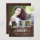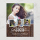 Budgetera Rustic Wood Studenten 4-fotoannonsering med elegant och modern text, med utrymme för fyra foton att tillkännage dina stora nyheter i student! Vårt papper för budgeten är en tunnare och känsligare papper, mindre kostsam, men ändå perfekt för ert inbjudan! Se till att du väljer ett kuvertalternativ! Kontakta oss på cedarandstring@gmail.com om du behöver hjälp med designen eller matchande produkter.