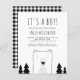 Inbjudan gäster till din barndusch med den här soliga skogen kallades till, med ord "Det är en pojke!" ovanför en söt svart och vit teckning om en björn och gräs träd, med texten i handritad typografi. Anpassa den med namn i mamma och duschdetaljer. Kortets baksida har en svartvit buffelkontroll som är uppställd mönster.