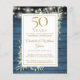 Med delikat akvarell landsbygdsträdgård grönska och vackra strängljus på en blå träpanel bakgrund, kan denna chic rustika inbjudan anpassas med din speciella 50-årsjubileumsfirande information. Designad av Thisisnotme©