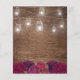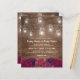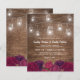 Billiga landsbröllopsinbjudningar med trähund, röda burgunder marsala blommor, murade glas med strängljus och en elegant redigerbar bröllopsmall.