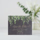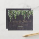 Spara datumet! Meddela bröllop till vänner och familj med den här budgeterade ritytan och eukalyptus spara datumkorten. Dessa inbjudningskort för budgetbröllop har ett kuvertalternativ. Anpassa med namn, bröllop datum, plats. Dessa unika gröna sparor i bröllop kommer att ge ett bestående intryck, era gäster kommer att spara datumet! COPYRIGHT © 2020 Judy Burrows, Black Hund Art - Med alla Höger reserverade. Budgeterad kursiv eukalyptus Greenery sparar datumet