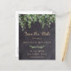 Spara datum! Meddela din bröllopsfest till vänner och familj med dessa budgetvänliga rustika skolplansh- och eukalyptus-kort. Dessa budgetvänliga bröllopskort behöver skickas som stora vykort och kan medföra extra portoavgifter, men de behöver inte kuvert eller returadressetikett. Personifiera med namn, bröllopsdatum och plats. Lägg till eventuell ytterligare information på baksidan. Dessa unika gröna "spara datum"-kort kommer att göra ett bestående intryck, dina gäster kommer säkert att spara datumet! COPYRIGHT © 2020 Judy Burrows, Black Dog Art - Alla rättigheter förbehållna. Budget Rustik Eukalyptus Spara Datum Vykort