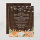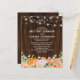 Budget höst bröllopsinbjudan med en rustik trädgårds bakgrund, bakgård chic strängljus, elegant höst orange och vit trädgård vattenfärg blommor, och en bröllopsfirande mall som är lätt att anpassa.