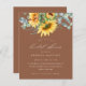 En snygg höstblommig terrakotta bröllopsdusch-inbjudan med akvarell solros och eukalyptus bukett. Klicka på redigeringsknappen för att anpassa denna design.