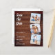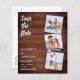 Spara datum! Meddela din bröllopsdag till vänner och familj med dessa rustika trä-, moderna fotokollage-spara-datum-kort. Dessa postkort med bröllopsinbjudan på budgeten måste skickas som stora postkort och kan medföra standardportoavgifter, men de behöver inte ett kuvert eller en returadressetikett. Anpassa med 3 av dina favoritfoton från förlovningen och anpassa med namn, bröllopsdatum, plats och webbplats. Lägg till all annan information på baksidan. Dessa unika spara-datummärken kommer att göra ett bestående intryck, dina gäster kommer att se till att spara datum! COPYRIGHT © 2020 Judy Burrows, Black Dog Art - Alla rättigheter förbehållna. Budget Rustika Trä Spara Datum Foto Bröllop